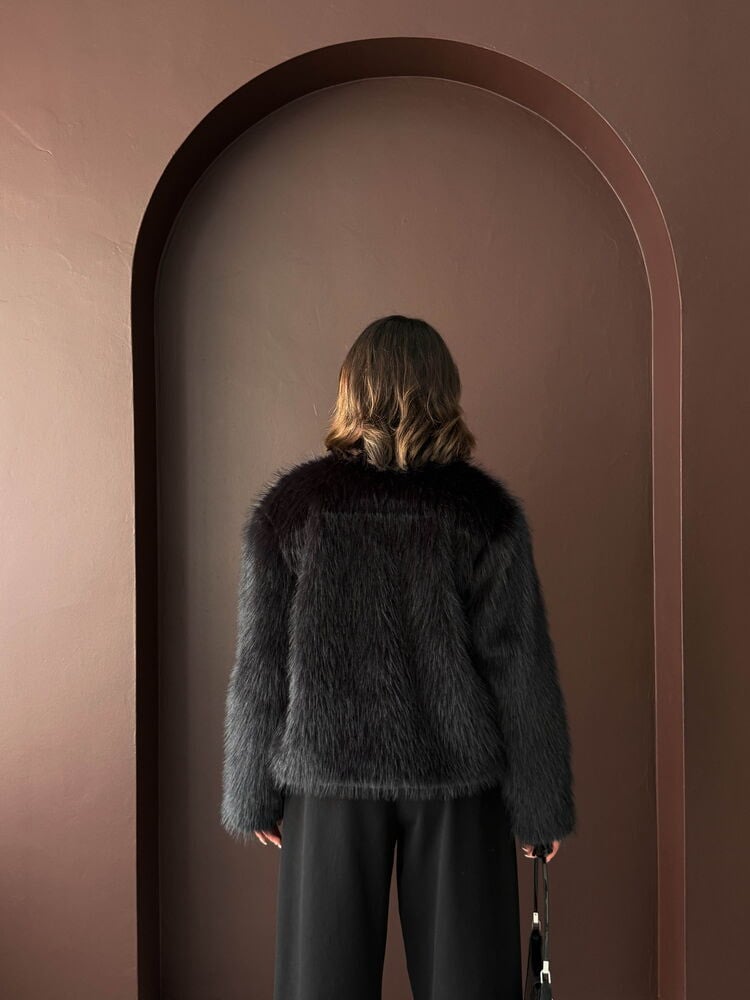 Redefinește-ți stilul de iarnă cu această geacă superbă, cropped, confecționată din blană artificială moale și pufoasă. Perfectă pentru a adăuga o notă de glamour texturat oricărei ținute, fie că alegi varianta bogată de Maro Ciocolatiu sau negrul intens, atemporal.