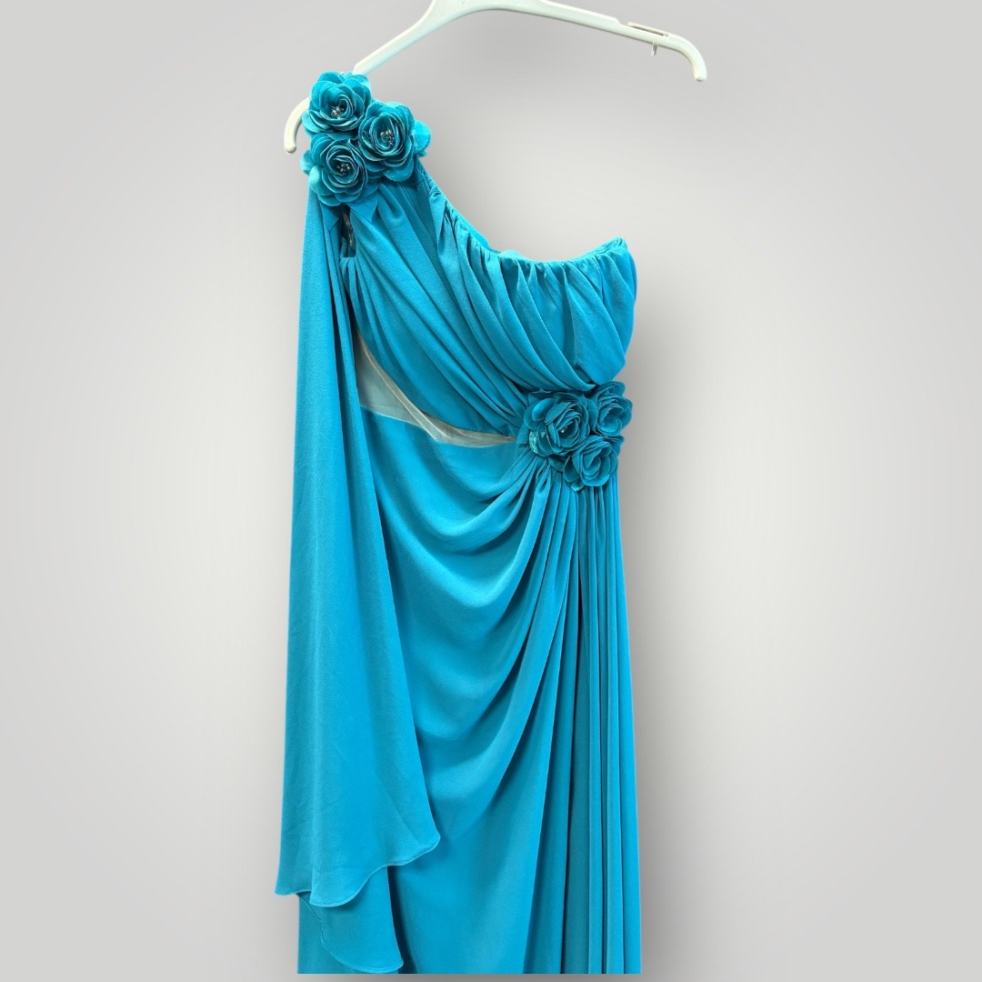 Rochie Maxi de Ocazie din Voal (Chiffon) fluid, în nuanța vibrantă de Albastru Turcoaz. Design-ul